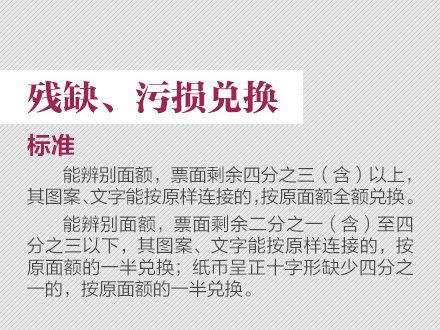 為更好地保護(hù)人民幣持有人的利益,需要根據(jù)科學(xué)技術(shù)的發(fā)展,不斷提高鈔票的防偽技術(shù)和印制質(zhì)量,保持人民幣防偽技術(shù)的領(lǐng)先地位。為此,中國(guó)人民銀行發(fā)行了2015年版第五套人民幣100元紙幣,在保持規(guī)格、主圖案、主色調(diào)等與2005年版第五套人民幣100元紙幣不變的前提下,對(duì)票面圖案、防偽特征及其布局進(jìn)行了調(diào)整,提高機(jī)讀性能,采用了先進(jìn)的公眾防偽技術(shù),更易于識(shí)別真?zhèn)巍?015年版第五套人民幣100元紙幣發(fā)行后,與同面額流通人民幣等值流通。 那么,新版人民幣的防偽特征有哪些?如何識(shí)別假鈔?殘缺、污損的人民幣要如何兌換?本文將帶你了解關(guān)于人民幣識(shí)別、兌換等最實(shí)用的知識(shí)。 ![]() ![]() ![]() ![]() ![]() ![]() ![]() ![]() ![]() ![]() 掃一掃 識(shí)別二維碼 可參與反假幣答題 還有機(jī)會(huì)贏好禮